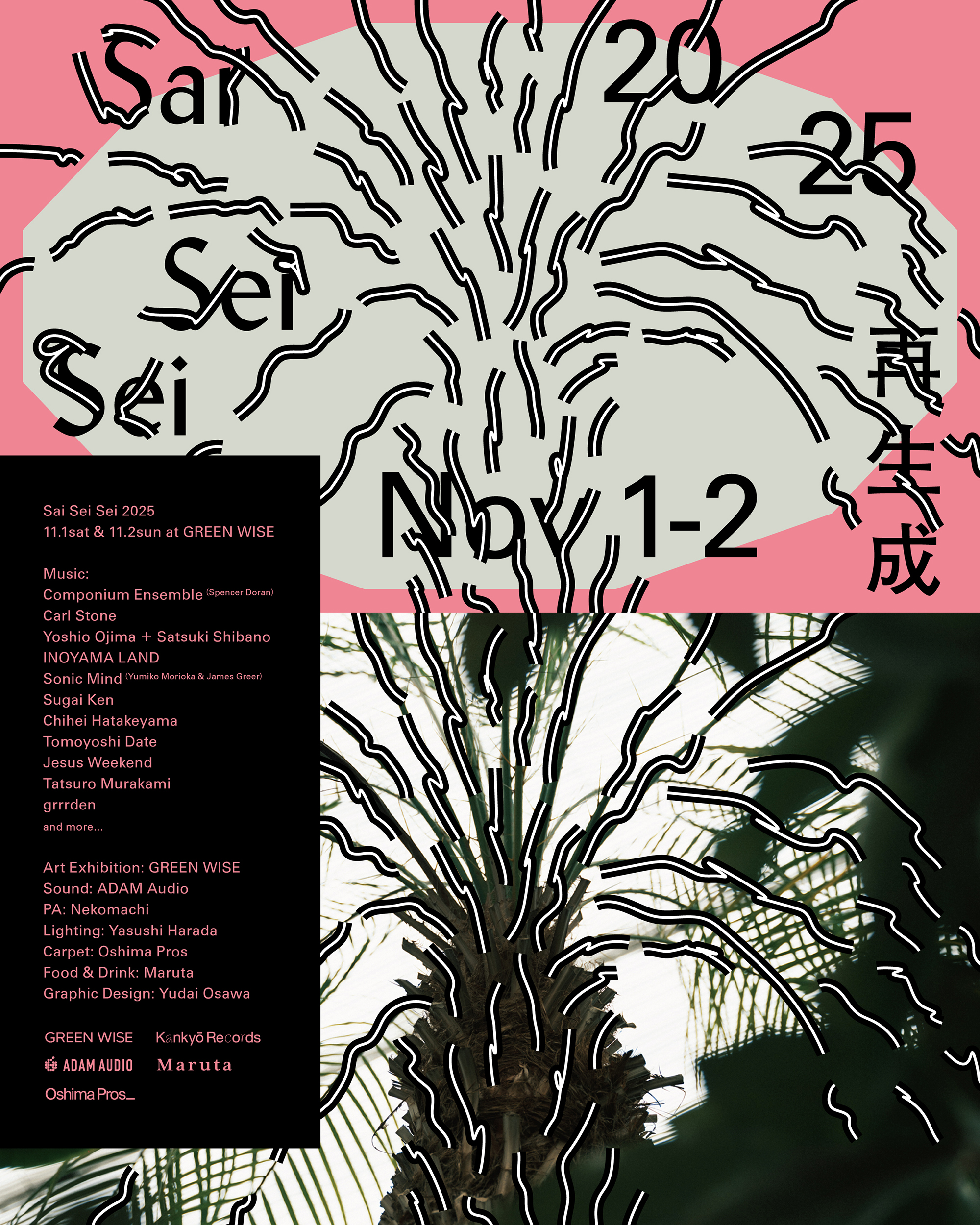 Sai Sei Sei 2025 is a comprehensive urban festival set in the botanical greenhouse of GREEN WISE, where visitors can enjoy a regenerative experience through music, art, talk, and food.It was created through a collaboration between GREEN WISE, which develops various environmentally conscious projects, and Kankyō Records, which pursues music experiences in residential environments.